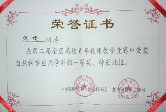 在第三十个教师节来临之际,由中国教科文卫体工会与教育部教师工作司联合主办的第二届全国高校青年教师教学竞赛,于2014年8月26日至8月29日在华中农业大学举行。我校土木与交通学院沈扬副教授代表江苏省参赛,以应用组第二名的优异成绩获得一等奖。获得应用组一等奖的还有北京大学、哈尔滨工业大学、武汉大学和吉林大学选派的教师。